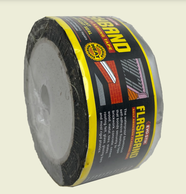 Evo-Stik Flashband is a self adhesive sealing bitumen strip which bonds instantly to provide a permanent watertight seal in all climates. This product can be easily applied using hand pressure and a seam roller, with no need for special equipment for forming, cutting or fixing.