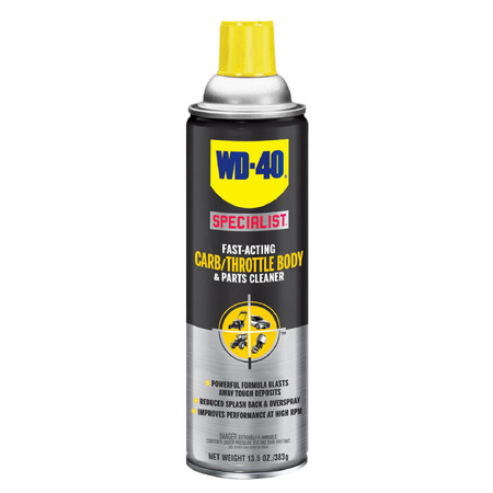A powerful solvent-based cleaner that blasts away tough carbon deposits, oil, and grime. WD-40 Specialist Carb/Throttle Body & Parts Cleaner with attachable precision straw is the only all-in-one carburetor cleaner spray you will need to clean your carburetor, throttle body, and unpainted metal parts. What makes this cleaner unique is the dual-action cleaning system. This formula is proven to improve performance at high RPMs. Great for both old and new vehicles and equipment, including; cars, trucks, tractors, motorcycles, boats, lawn mowers, weed trimmers, and other gas-powered lawn outdoor equipment. Safe for use on most unpainted metals and will not affect oxygen (O2) sensors or catalytic converters upon incidental contact. Cleans carburetors, throttle body & metal parts Powerful formula blasts away tough deposits