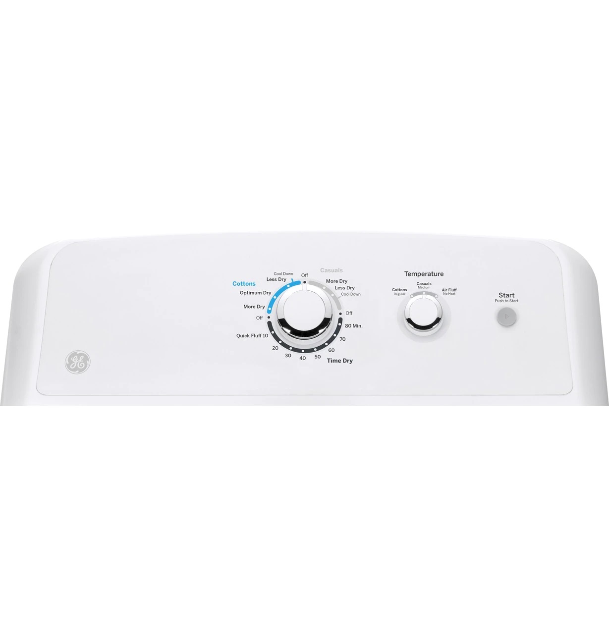 The General Electric 27" , 7.2 Cu. Ft Electric Dryer effoers efficient, spacious, and convenient drying for large loads. With a 7.2 cubic feet capacity, it features Sensor Dry technology that adjusts the drying time to prevent over-drying and conserve energy. Multiple drying cycles, including delicate, heavy-duty, and normal settings, allow you to customize the drying process for various fabrics. The wrinkle care option helps keep clothes looking crisp. The top-load design makes it easy to load and unload laundry, while the sleek, modern finish complements any laundry room decor. Key Features: 7.2 Cu. Ft Capacity: Accommodates large loads and reduces the need for multiple cycles. Sensor Dry Technology: Automatically adjusts drying time to save energy. Multiple Drying Cycles: Delicate, heavy-duty, and normal settings. Wrinkle Care Option: Prevents wrinkles by tumbling clothes periodically after the cycle ends. Modern Design: Sleek, user-friendly control panel with a digital display.