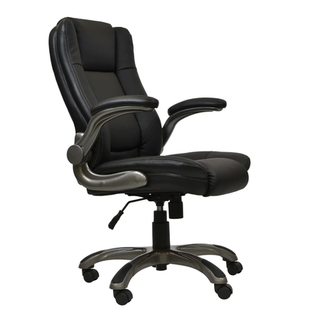 This modern office chair comfortably fits users up to 220lbs, features built-in lumbar support and padded flip-up armrests. It includes a silver color 5-star nylon base with dual nylon casters. Get the most out of your next office chair with this ergonomic curved back chair. Key Features: ?????????????????? ???????? ?????? ???????????? ??????????: This versatile ergonomic office chairs seat design with synthetic upholstery also on padded armrests provides optimal comfort and durability all in a modern sleek design ????????????????: The arm desk chair is made with upholstered synthetic seating and eye-catching styled attractive stitched seat and back. This ergonomic office chair designed with the silver molded frame ?????????????? ?????? ????????????: This swivel task chair can be rolled freely. The high-end rolling capabilities allow the user to move easily from one side to the other with smartly fashioned flip-up armrests ???????? ?????? ???????????? ????????????????????: The pneumatic height adjustment mechanism provides a great seat height adjustment range and the reclining back has a tension control knob for your comfort ?????? ?????????????? ??????????????: Five rolling casters from the below can move you anywhere, which is preferable for office work. These silver color nylon base with dual durable nylon wheels are non-marking