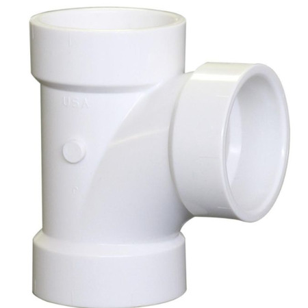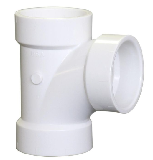 You will find the Tee fitting to be one of the most useful fittings for building projects with PVC pipe. One outlet is at a 90 degree right to the other two outlets. All three outlets are non-threaded sockets and are compatible with furniture grade PVC pipe or standard PVC pipe from a hardware store. Furniture Grade means this fitting has a non-marked, glossy finish.