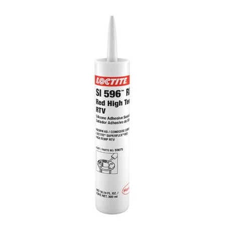 Loctite High Temp RTV Silicone is a red, high-temperature sealant designed for reliable gaskets and sealing in various applications. It provides strong bonds and withstands temperatures up to 600?F. FEATURES - Colour: Red - Cure Time: 24 hours - Temperature Range: -75?F to +600?F - VOC Content: 3.08% - Applications: Valve covers, oil pans, exhaust stacks, high-temperature ducting SPECIFICATIONS - Container Size: 300ml - Container Type: Cartridge - Odour: Acetic acid - Chemical Properties: Acetoxy silicone rubber - Hardness: ?18 Shore A BENEFITS - Resists aging, weather, and thermal cycling - Fills gaps up to 0.25" - Tack-free in 30 minutes; full strength in 24 hours
